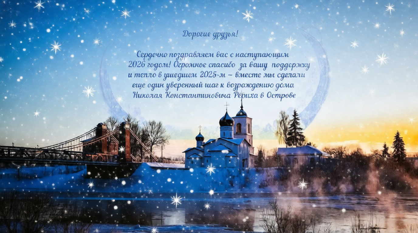 Сердечно поздравляем вас с 2026 годом! Огромное спасибо за вашу поддержку и тепло в уходящем 2025-м. Вместе мы сделали еще один увереныый шаг к возрождению Дома Николая Константиновича Рериха в Острове!