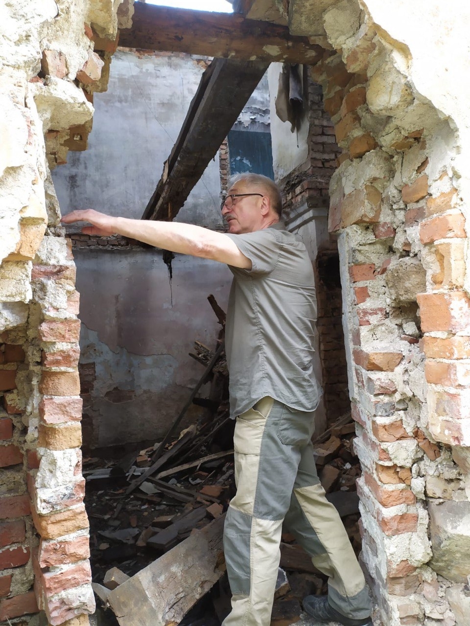 Владимир Евгеньевич планомерно, год за годом делал необходимые промеры вручную, постепенно выявляя архитектурные особенности пострадавшего памятника, готовил необходимые рабочие чертежи, намечая ход дальнейших работ, консультировал наших плотников и каменщиков, предложил архитектурное решение по приспособлению главного здания усадьбы под будущий полноценный музейный комплекс. Бесценны и его профессиональные комментарии для документального фильма «Эха Псковы» «Остров Рериха». Он стал нашим другом и единомышленником, без которого трудно было бы представить именно полноценную, научную реставрацию Дома Н.К. Рериха в г. Остров.